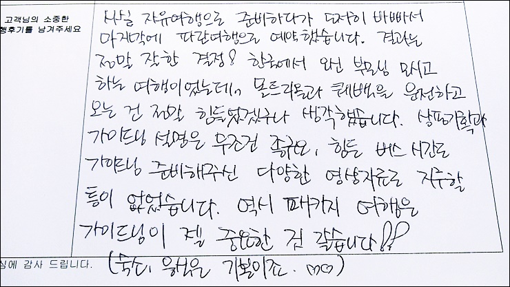 ‘파란여행’을 이용하신 고객님들의 소중한 후기입니다.