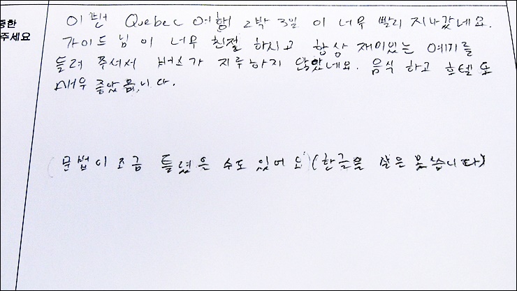 제목 2019년 07월 26일 퀘벡 2박3일 2호차 후기