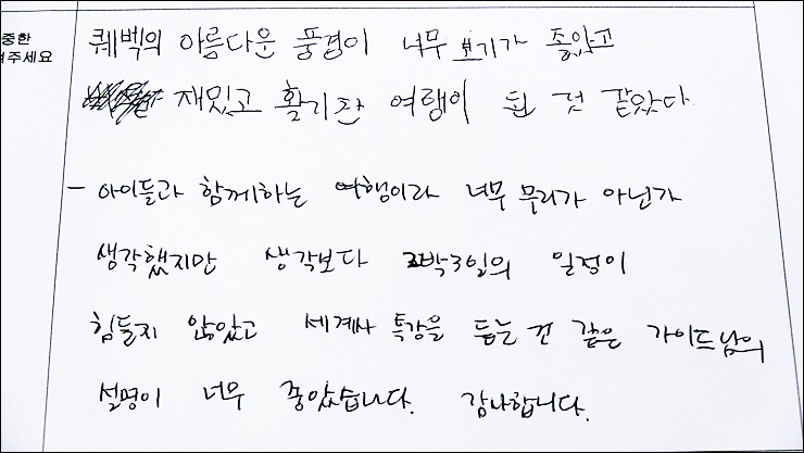 제목 2019년 08월 09일 퀘벡 2박3일 2호차 후기