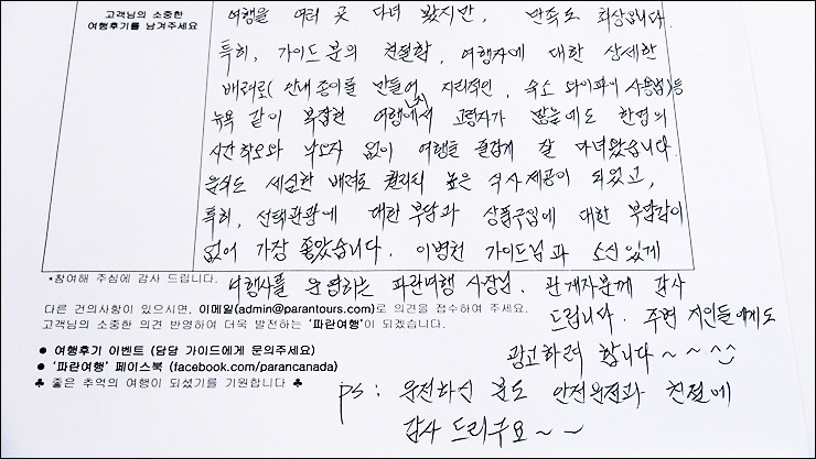 ‘파란여행’을 이용하신 고객님들의 소중한 후기입니다.
