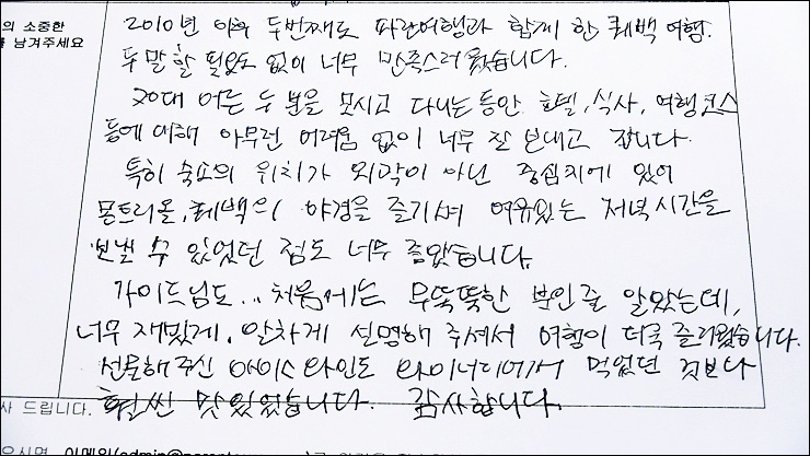 ‘파란여행’을 이용하신 고객님들의 소중한 후기입니다.