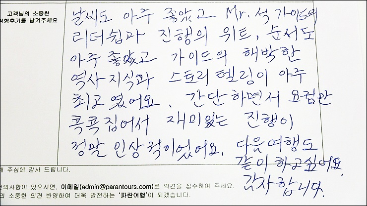 ‘파란여행’을 이용하신 고객님들의 소중한 후기입니다.