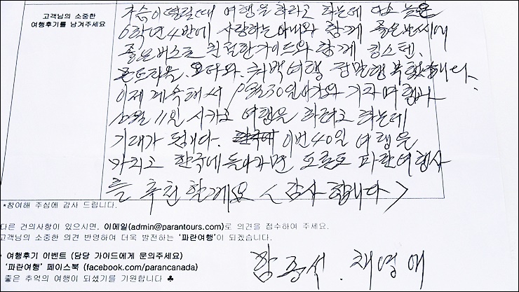 캐나다동부출발 여행상품의 시장점유율 96.89%가 입증하는 캐나다 최대규모 한인여행사 '파란여행'