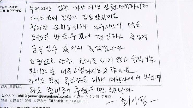 ‘파란여행’을 이용하신 고객님들의 소중한 후기입니다.