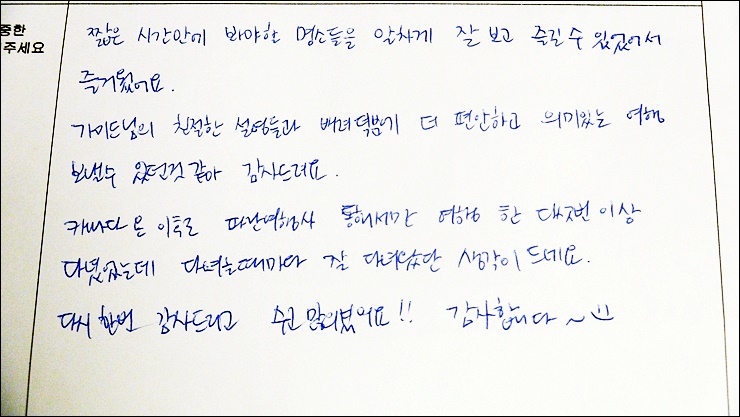 • 후기를 작성하시면, 담당자 확인 후 파란캐쉬가 지급됩니다.