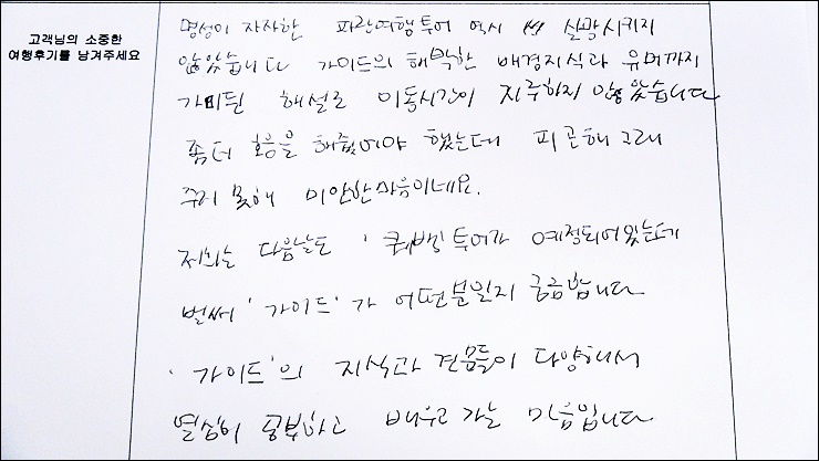 ‘파란여행’을 이용하신 고객님들의 소중한 후기입니다.