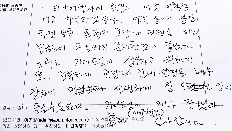 ‘파란여행’을 이용하신 고객님들의 소중한 후기입니다.