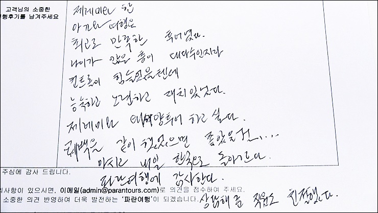 ‘파란여행’을 이용하신 고객님들의 소중한 후기입니다.
