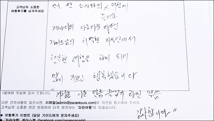 캐나다동부출발 여행상품의 시장점유율 96.89%가 입증하는 캐나다 최대규모 한인여행사 '파란여행'