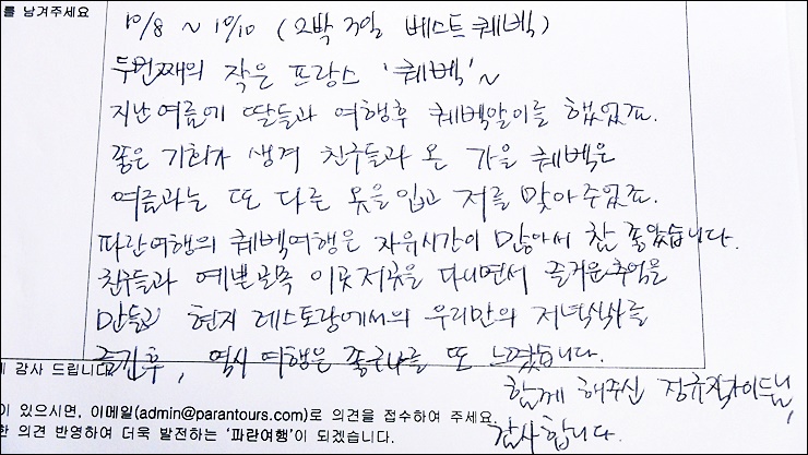 ‘파란여행’을 이용하신 고객님들의 소중한 후기입니다.