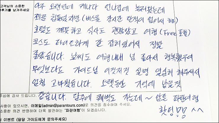 ‘파란여행’을 이용하신 고객님들의 소중한 후기입니다.