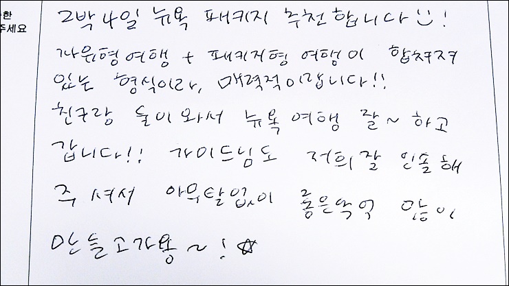 제목 2019년 10월 11일 뉴욕 2박4일 2호차 후기