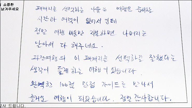 ‘파란여행’을 이용하신 고객님들의 소중한 후기입니다.