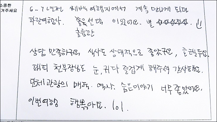 ‘파란여행’을 이용하신 고객님들의 소중한 후기입니다.