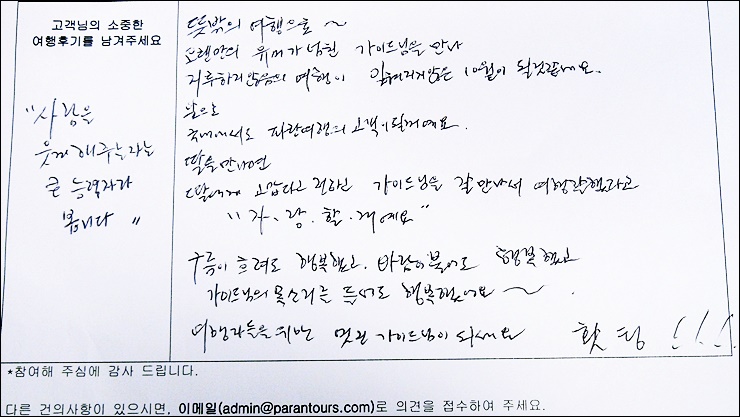 ‘파란여행’을 이용하신 고객님들의 소중한 후기입니다.