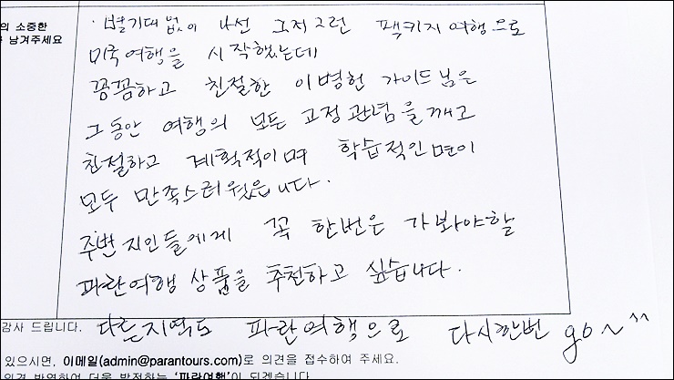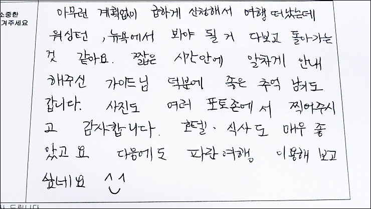 ‘파란여행’을 이용하신 고객님들의 소중한 후기입니다.