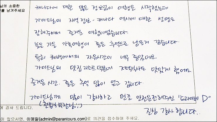 제목 2019년 10월 22일 퀘벡 2박3일 1호차 후기
