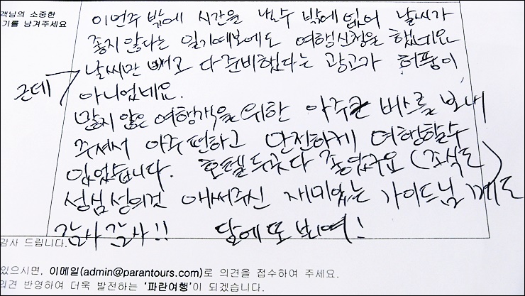 ‘파란여행’을 이용하신 고객님들의 소중한 후기입니다.