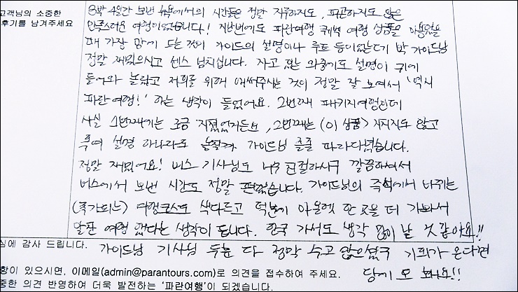 ‘파란여행’을 이용하신 고객님들의 소중한 후기입니다.
