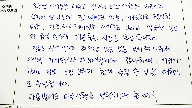 ‘파란여행’을 이용하신 고객님들의 소중한 후기입니다.