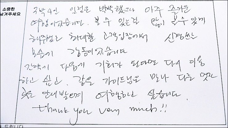 • 후기를 작성하시면, 담당자 확인 후 파란캐쉬가 지급됩니다.