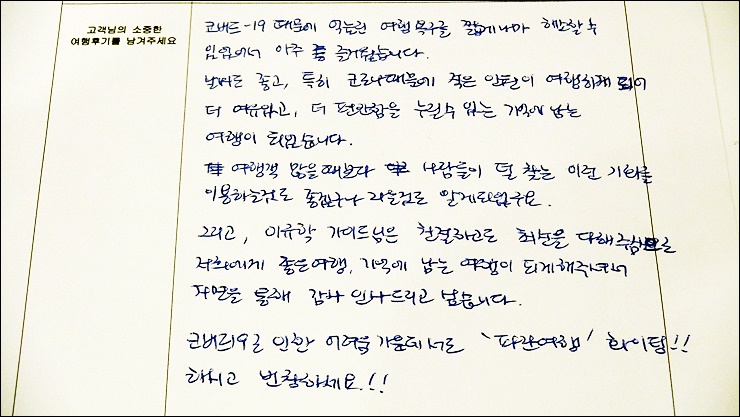 ‘파란여행’을 이용하신 고객님들의 소중한 후기입니다.