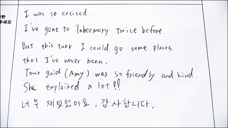 제목 2020년 09월 05일 소그룹 맞춤여행-토버모리 1일 3호차 후기