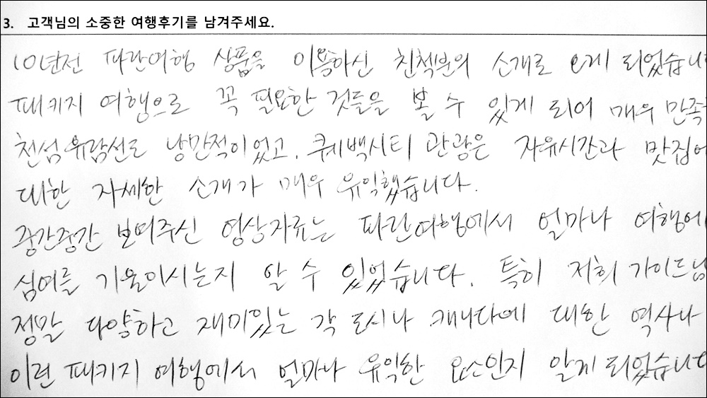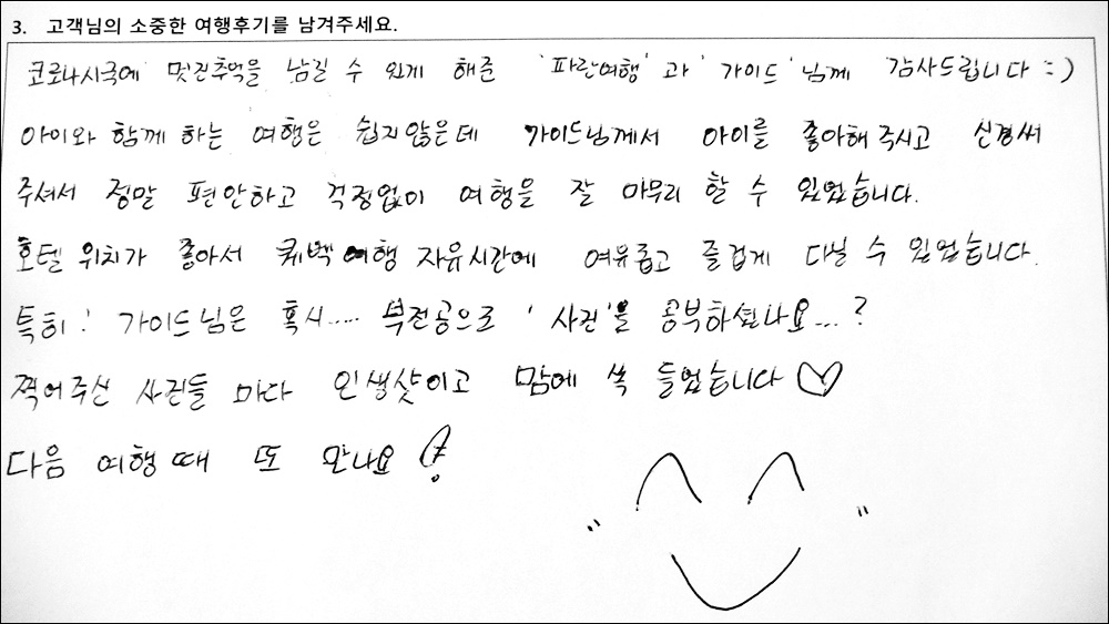 ‘파란여행’을 이용하신 고객님들의 소중한 후기입니다.