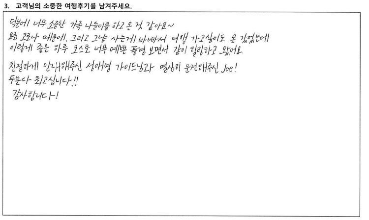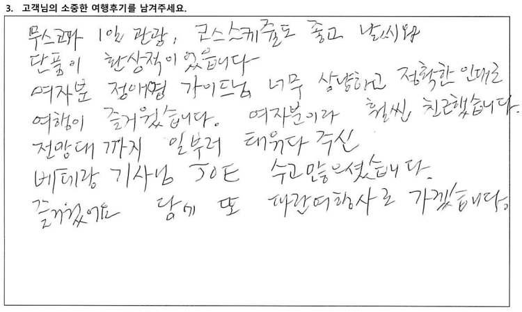 ‘파란여행’을 이용하신 고객님들의 소중한 후기입니다.