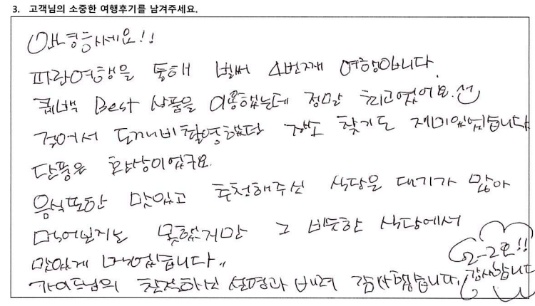 ‘파란여행’을 이용하신 고객님들의 소중한 후기입니다.
