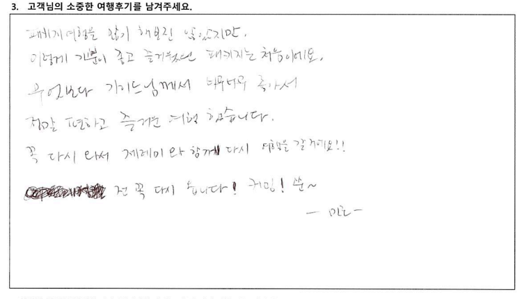 ‘파란여행’을 이용하신 고객님들의 소중한 후기입니다.