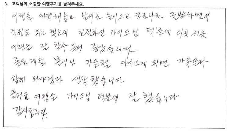 ‘파란여행’을 이용하신 고객님들의 소중한 후기입니다.