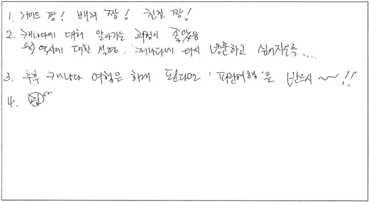 • 후기를 작성하시면, 담당자 확인 후 파란캐쉬가 지급됩니다.