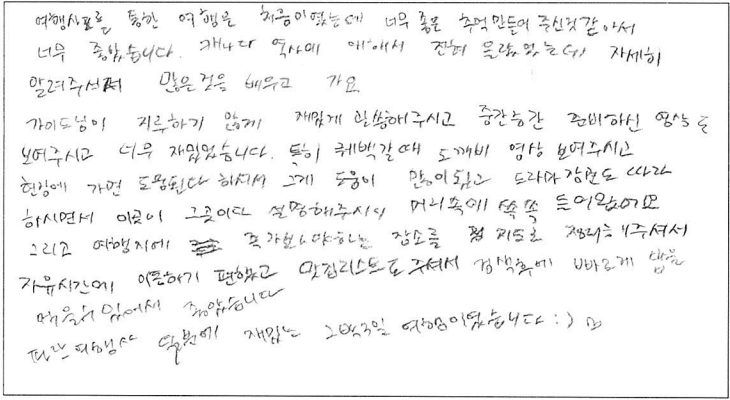 ‘파란여행’을 이용하신 고객님들의 소중한 후기입니다.