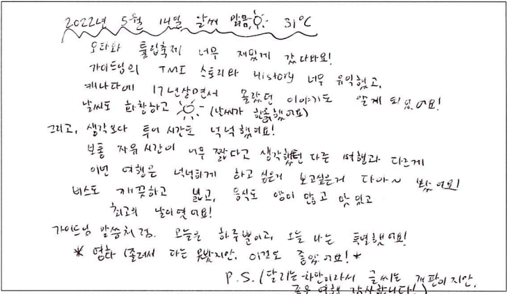 제목 | 2022년05월14일 출발한 오타와튤립축제 1일 자필후기 | ||
