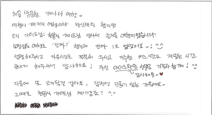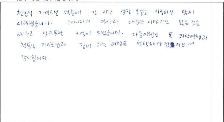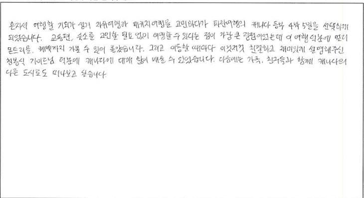 제목 | 2022년06월28일 출발 퀘벡 자필후기 | ||