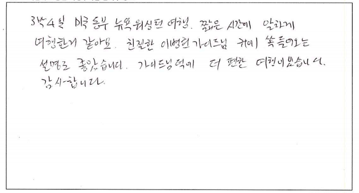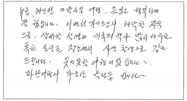 제목 | 2022년07월18일 출발 뉴욕+워싱턴3박4일 자필후기 | ||