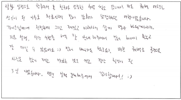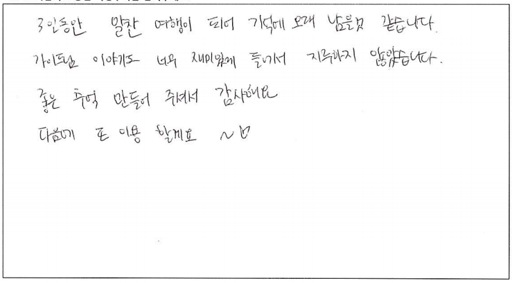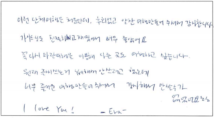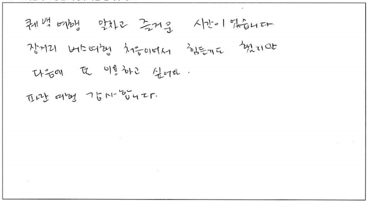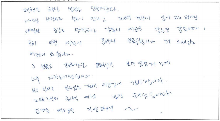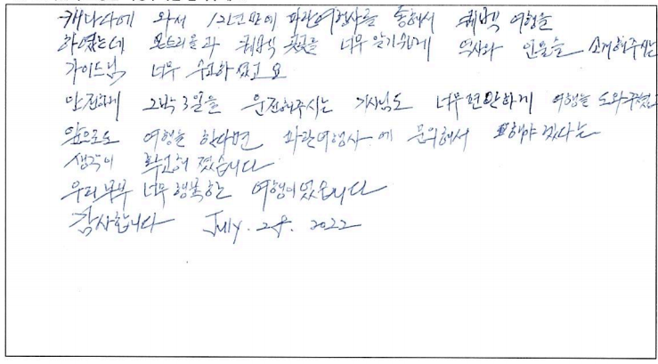 제목 | 2022년07월26일 출발 퀘벡 자필후기(2-1호차) | ||