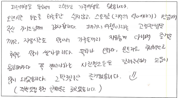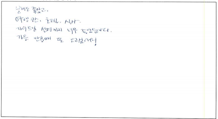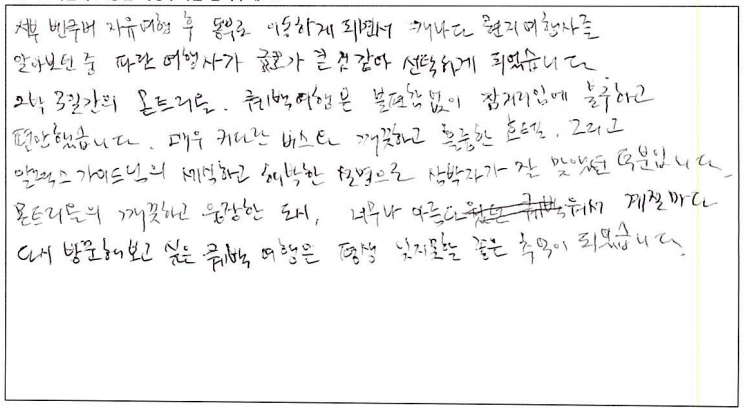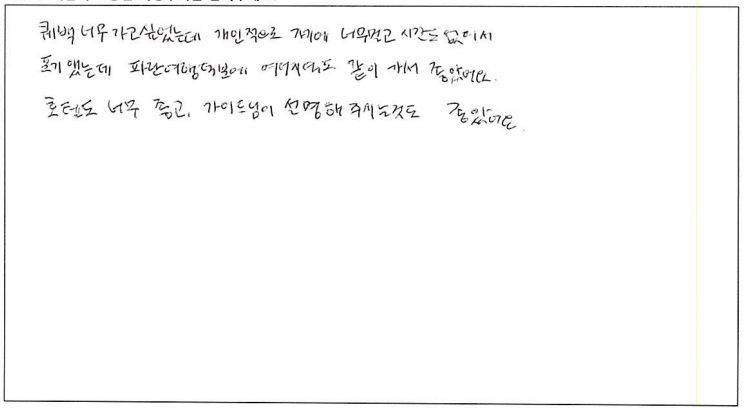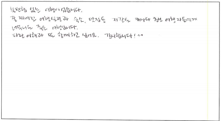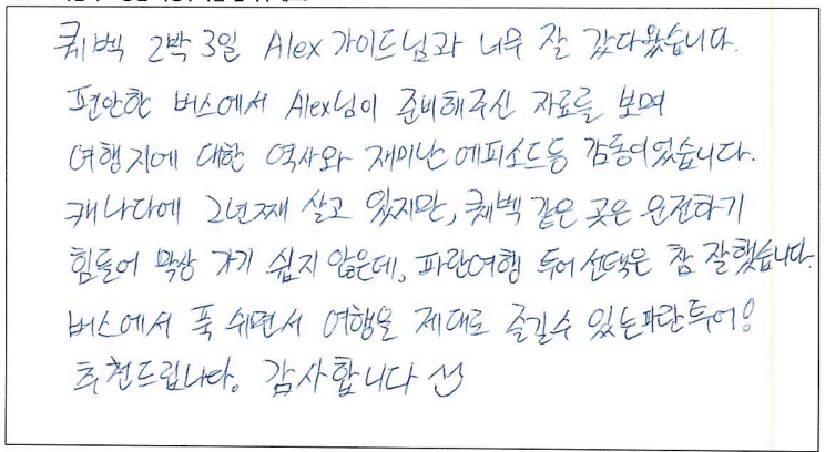 제목 | 2022년07월30일 출발 퀘벡 자필후기 | ||