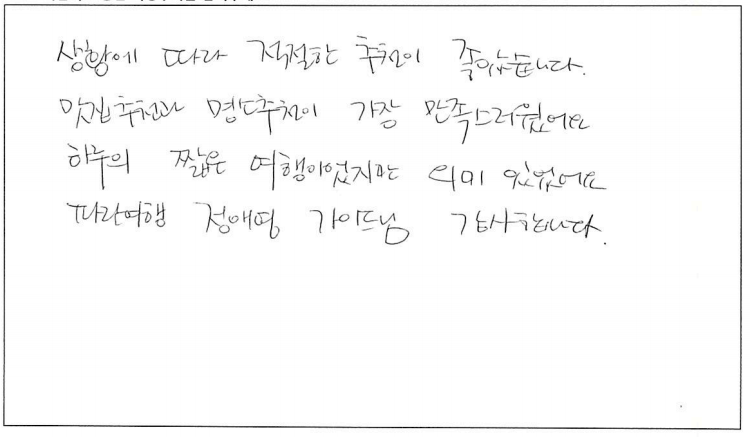 제목 | 2022년08월06일 출발 메노나이트+스트라트포드1일 자필후기 | ||