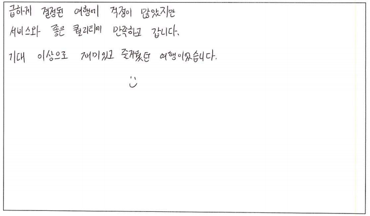 제목 | 2022년08월06일 출발 토버모리1일 자필후기 | ||