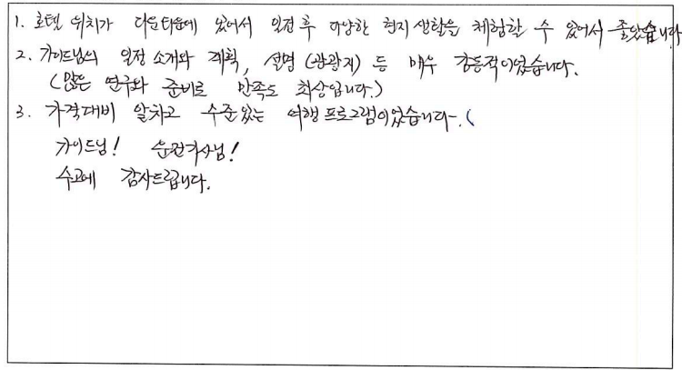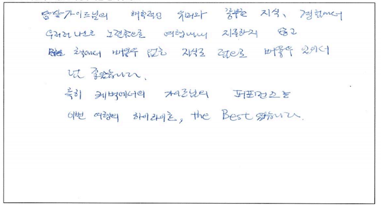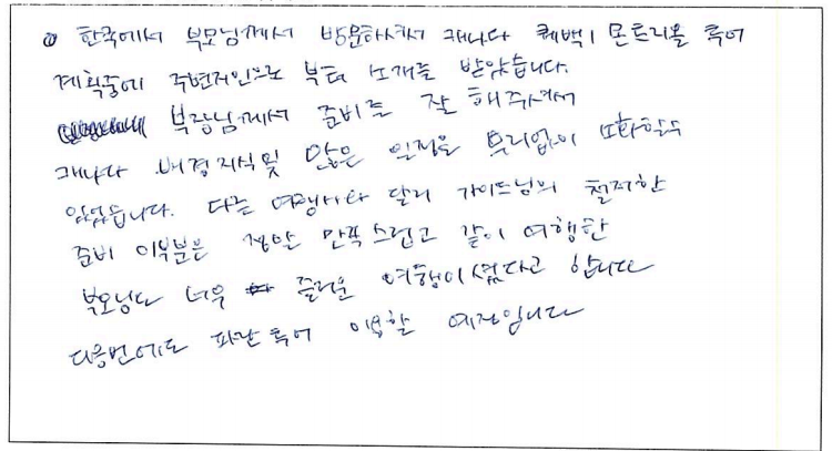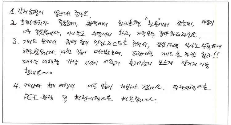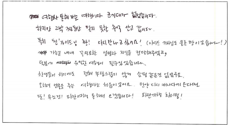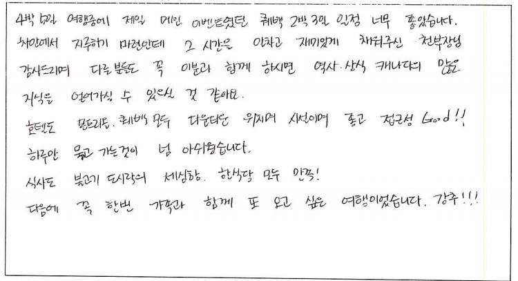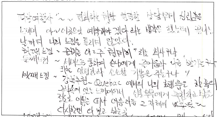 제목 | 2022년08월09일 출발 퀘벡 자필후기 | ||