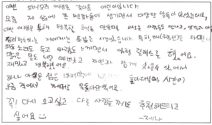 제목 | 2022년08월20일 출발 토버모리1일 자필후기 | ||