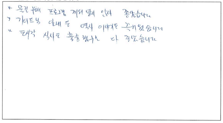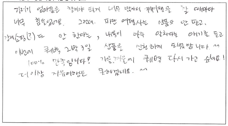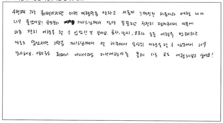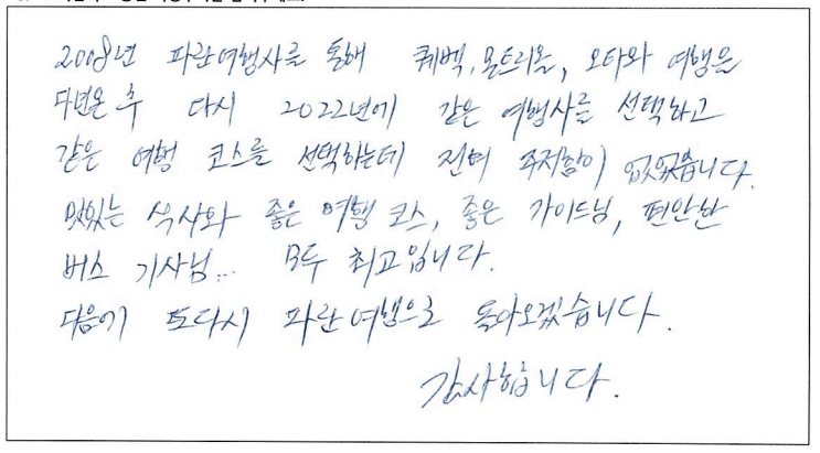 제목 | 2022년08월29일 출발 퀘벡 자필후기 | ||