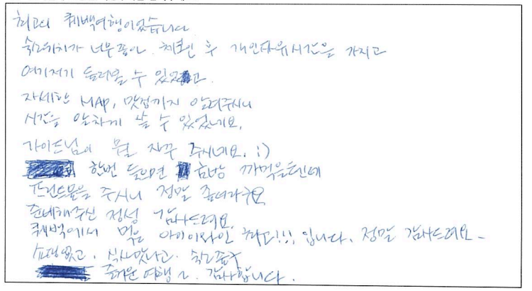 제목 | 2022년09월02일 출발 퀘벡 자필후기 | ||
