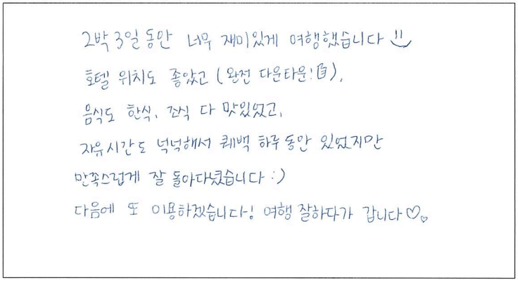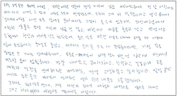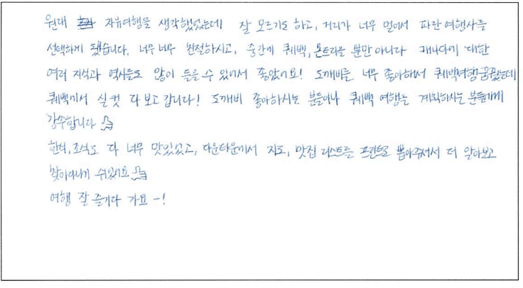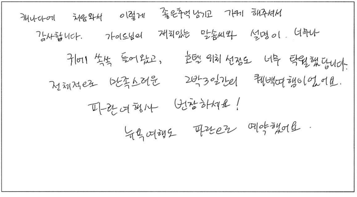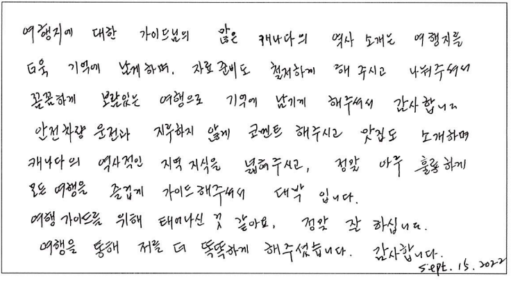 제목 | 2022년09월13일 출발 퀘벡 자필후기 | ||