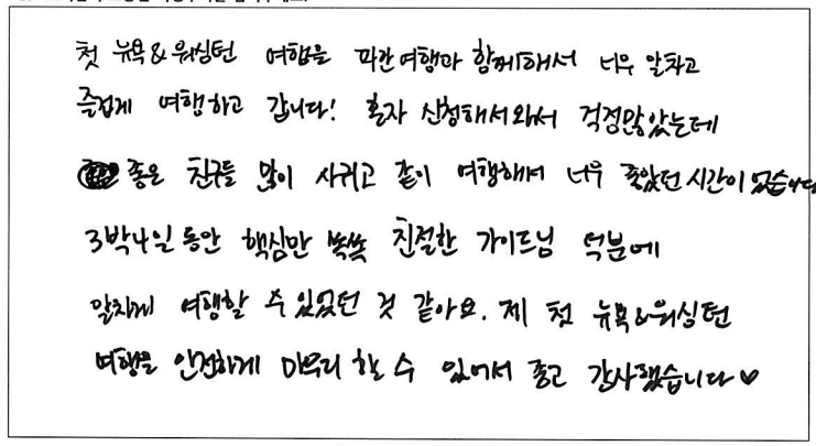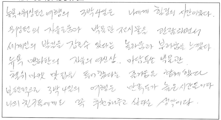 제목 | 2022년09월22일 출발 뉴욕+워싱턴3박4일 자필후기 | ||