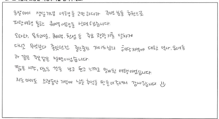 제목 | 2022년09월23일 출발 퀘벡+몽트랑블랑 자필후기 | ||