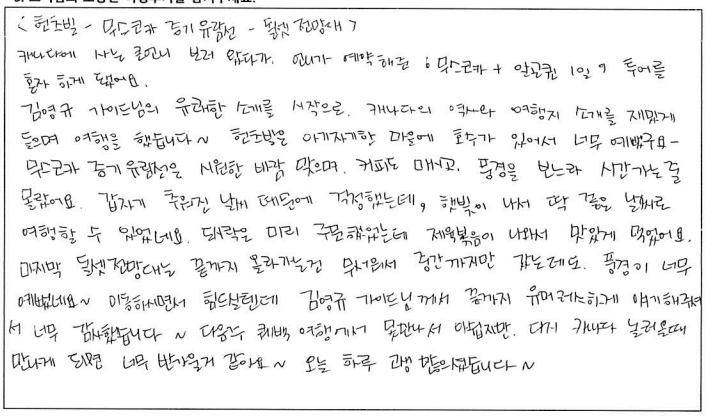 제목 | 2022년09월29일 출발 무스코카+알곤퀸1일 자필후기 | ||