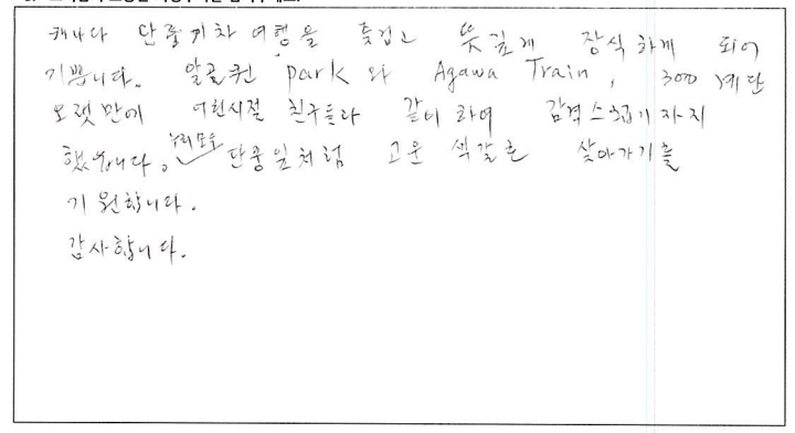 제목 | 2022년10월04일 출발 아가와단풍기차+증기유람선 자필후기(2-1호차) | ||